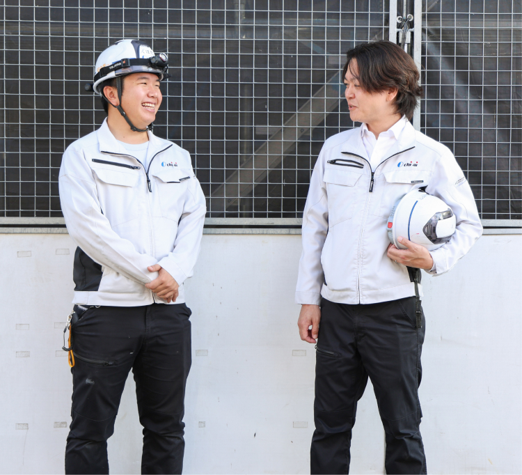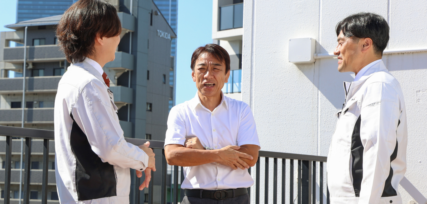 若手が活躍できるオチアイで働く社員の中心は30代。若い世代が活躍・チャレンジできる環境を整え、時代の変化や最新技術を柔軟に吸収しながら、既存の枠にとらわれない発想で、大規模修繕の新たな価値を創造しています。
