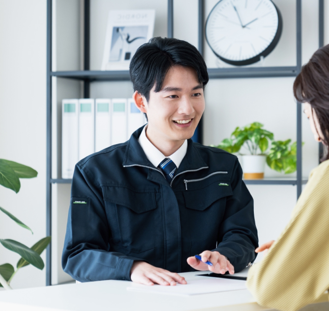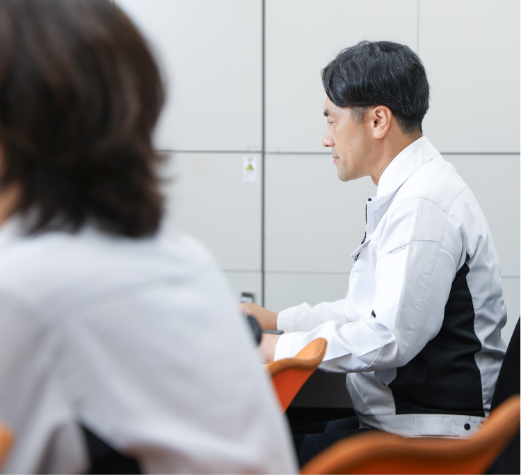 STEP01第一歩は現場同行からまずは先輩社員に同行し、お客様との打ち合わせに参加します。実際の営業を体感しながら営業の進め方を学び、必要な知識やスキルを身につけていきます。